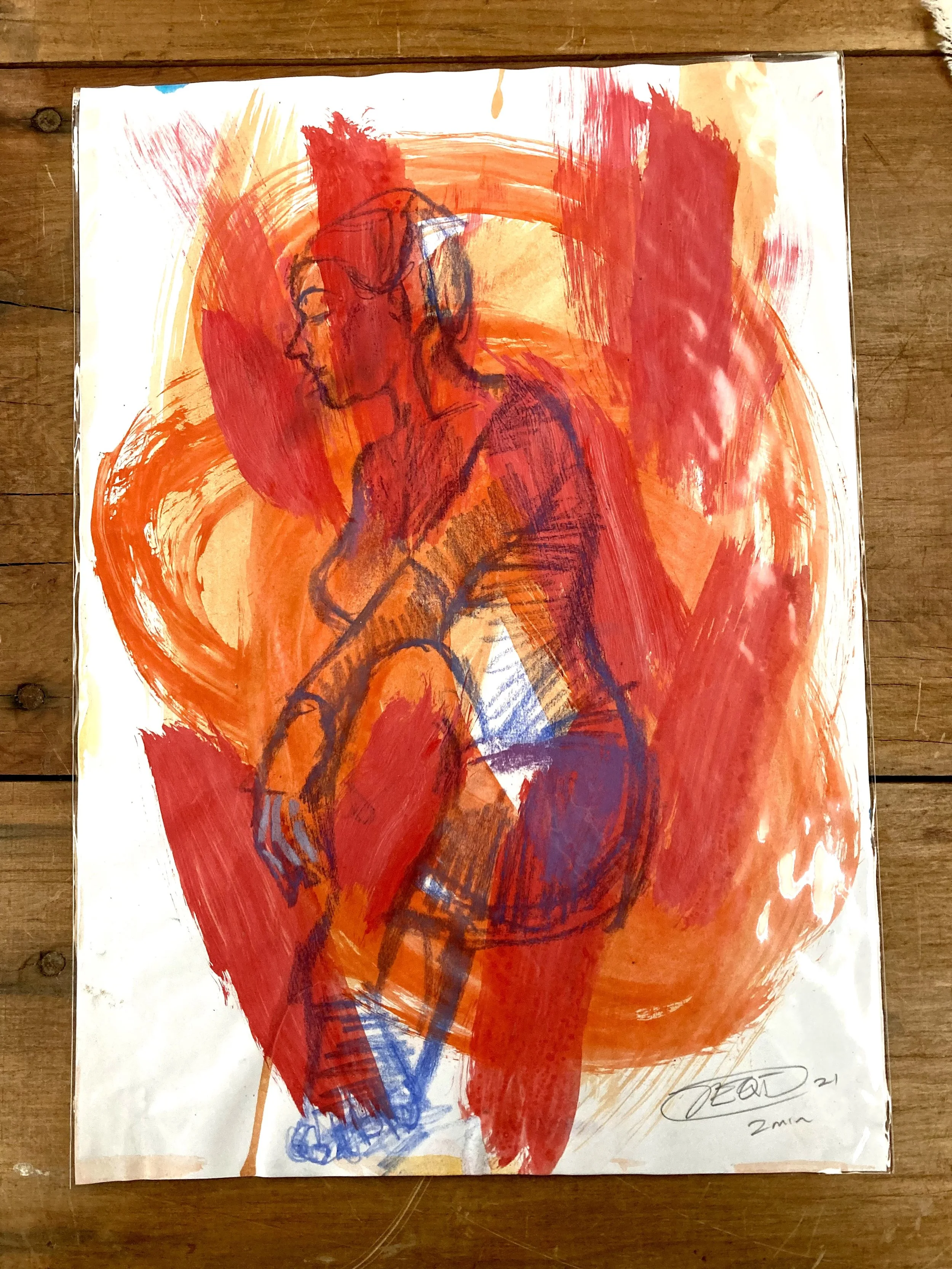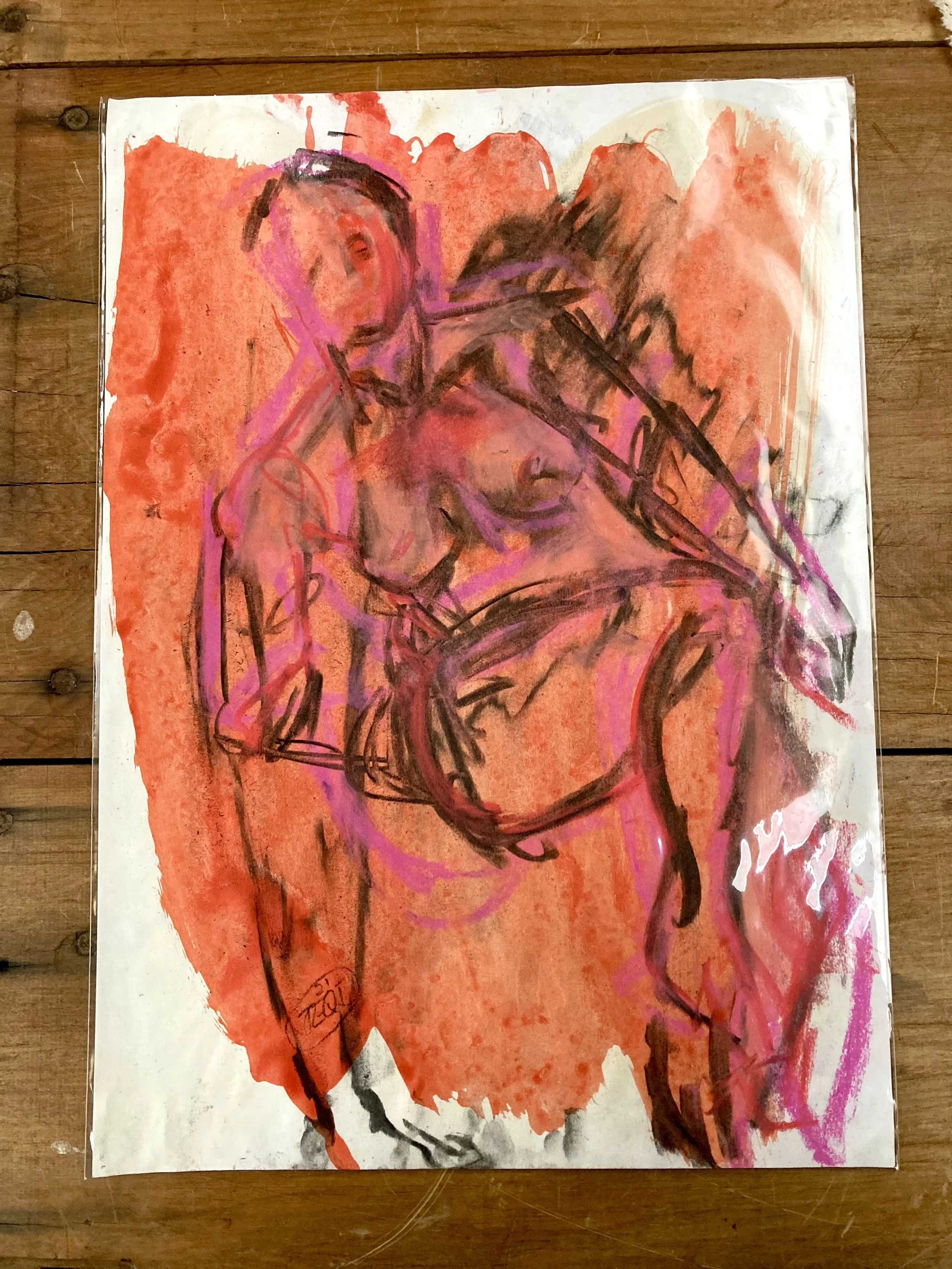 No.1 'Orange lady #1' A4 Life drawing. $100