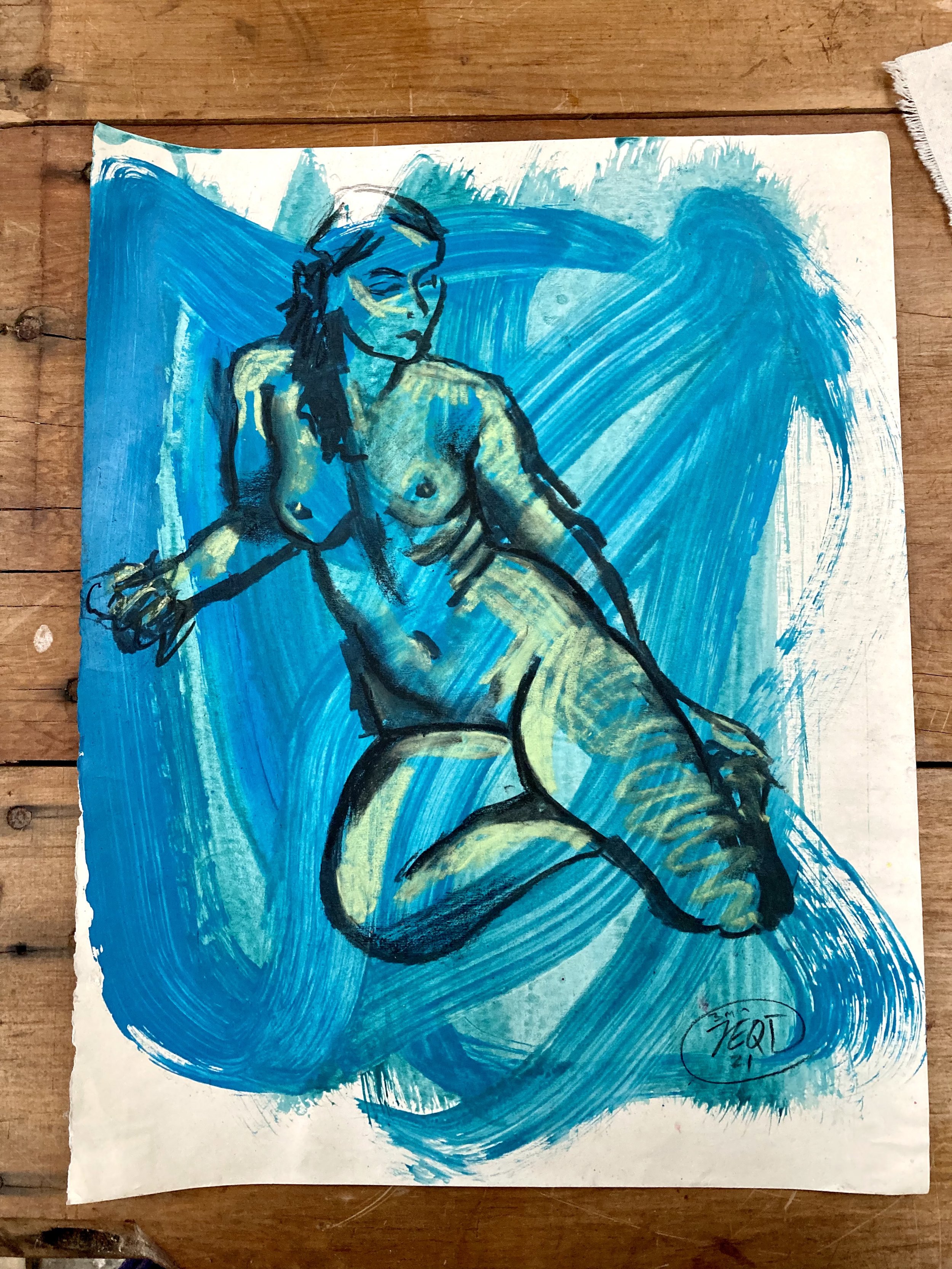'Blue' Mixed media drawing on dressmakers paper. $100
